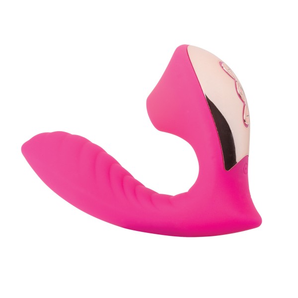 Девайс для одновременной стимуляции точки G и клитора. При этом, G-зону стимулирует мини вибратор с анатомической верной формой ствола, увеличенной, рельефной и изогнутой головкой. А, клитор стимулируется волнами вакуума, что исключает потерю чувствительности, даже после нескольких оргазмов!
